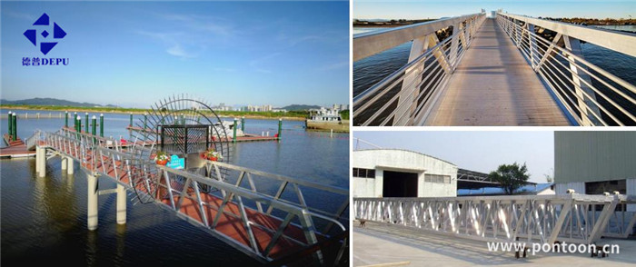 供休閑船舶系靠泊、人員上下船使用的一種浮體結(jié)構(gòu)。浮橋由浮箱、浮橋框架、