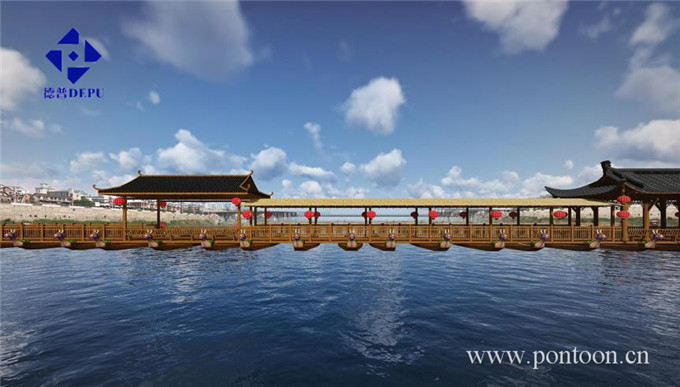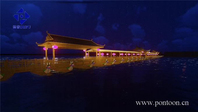 試想,如若在柱子上寫上古代的詩詞,在文化長廊里面掛上一些字畫,這是多么令人向往的意境。并且將浮體設計成龍舟形式,這樣不僅和零陵的賽龍舟文化僅僅相連,也能讓這座橋完美和零陵完美融合。 夜景圖: 夜晚的浮橋在燈籠燈光的襯托下,宛如一朵出水芙蓉,讓人有一種情不自禁想去采摘的沖動,想去了解、想去欣賞。 雪景下的零陵古橋更是蒙上了一層神秘的面紗讓人忍不住想去一探究竟。 標簽: