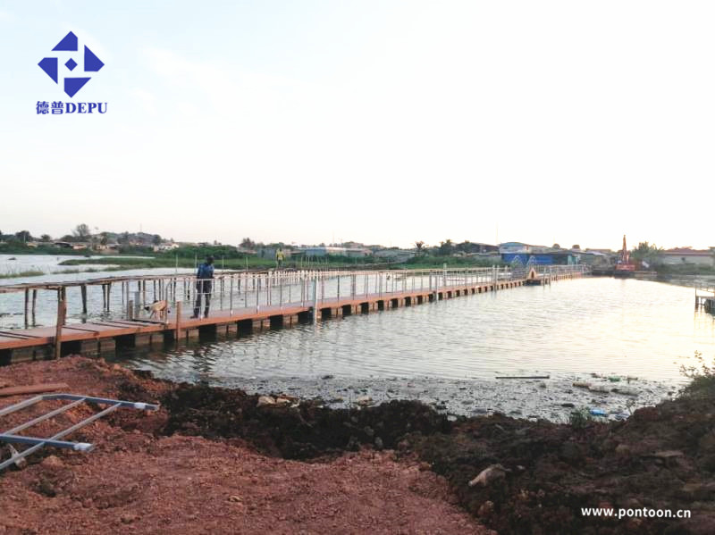 今年3月,我們完成了援助非洲浮橋項目工程,該項目旨在改善當地居民的生活條件。 (原有木橋) 在當地,湖上原本只有一座沒有護欄的簡單狹窄的木橋,水深1米,非常不方便和危險。于是經過我司專業工程師的溝通與設計,我們給其建造了兩座浮橋:一座125米,一座105米,均為1.5米寬,0.8米高,1.5米寬的拱橋,并可以讓小筏子通過。建設后,使當地居民的交通變得更加方便和安全。 (新建浮橋) 這座浮橋通過了BV認證。它采用木塑面板,所有的鋼材都是鍍鋅的,價格便宜,使用壽命長。 標簽: 棧橋棧道棧橋棧道