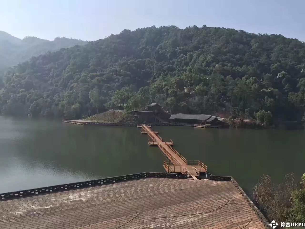 經過多次現場勘測湖水和湖面情況,廣州德立將提前組裝完成的橋面進行水面吊裝和拼接工作,嚴謹規范施工過程和施工工藝,確保浮橋上可以安全通行。